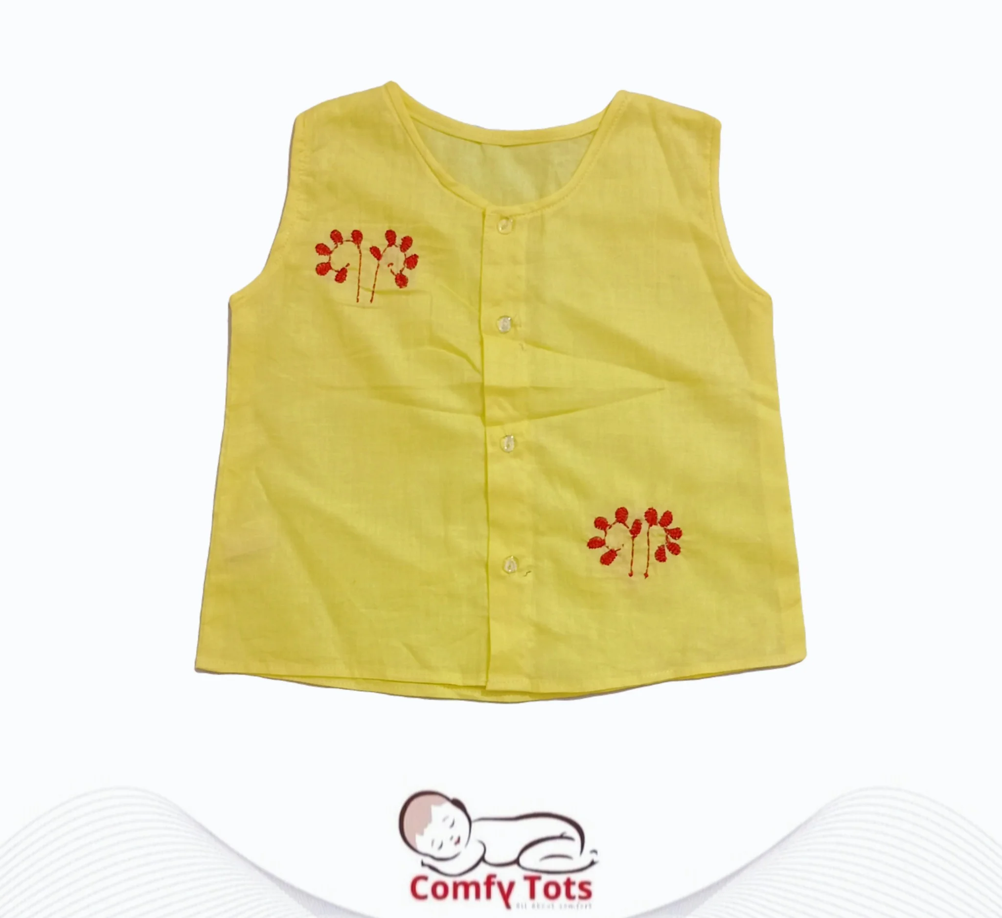 Comfy Tots Embroidery Sleeveless – Handmade Cotton Baby Wear (0–10 Years)